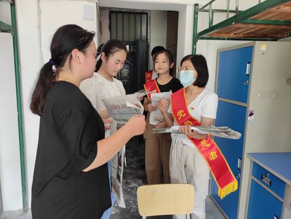 发放校报和安全手册、介绍学院详情、对新生进行安全教育……一根红绶带让一批特殊的志愿者聚集在一起,共同为新生服务,他们正是tyc41183太阳成集团党员示范岗的志愿者。从男生宿舍到女生宿舍,从二楼到五楼,从上午九点到下午五点,近40名师生党员分别去了学院480余名新生的每一个宿舍。