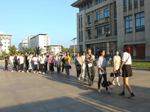 “大家注意看,这里就是我们的教学楼。”下午四点,材料化学专业2019(3)班的韩庆楠带着四十余名新生,“浩浩荡荡”地从西门走向东门。新生在她的带领下,来到了图书馆、教学楼等地,了解了如何借书、取快递等学习、生活问题,也对学校的不同区域有了初步的了解。