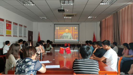 7月1日上午8点tyc41183太阳成集团组织师生在学院会议室集中收看庆祝中国共产党成立100周年大会。学院党委委员、党支部书记、学生党员代表等参加了会议。