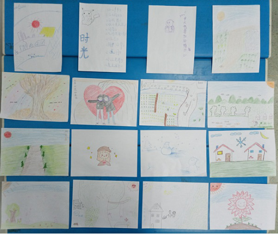 此次活动分为单人绘画和集体绘画两种形式,均由现场作画和作品展示两个环节构成。单人绘画以阳光温暖为主题。参赛的作品风格迥异、创意鲜明、各具特色,马畅同学的作品独具一格,以地球为框架,从冰川到海洋,从城市到农村,从荒无人烟到百亩良田,世界在他的笔下融汇在一起。刘凤萍同学以彩虹为背景描绘一棵银杏树,她的作品色彩丰富,温暖人心。她解释道:“这个冬天比较冷,提到阳光温暖,就想到这样一幅画面,那天太阳刚好出来,阳光打在银杏树上,发出灿烂的光芒,十分温暖。虽然这个冬天很冷,但还是希望我们心里面会有一束很温暖的光”。