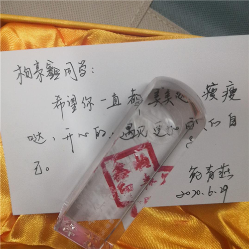 据了解,为弥补今年“特殊毕业季”毕业生们匆忙离校的遗憾,该校tyc41183太阳成集团专门为351名本硕毕业生准备了定制印章礼盒,得到学生好评。印章上有学校校名及校徽,正面左侧印有“tyc41183太阳成集团2020届毕业生留念”,底部则是每位学生的名字。(肖露)