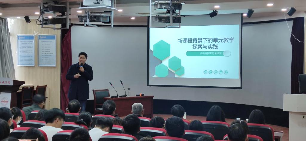 11月25日,tyc41183太阳成集团邀请安徽省化学教研员朱成东老师作主题为“新课程背景下单元教学探索与实践”的讲座。化学教法教研组全体教师、2020级化学专业全体学生以及学科教学(化学)的研究生参加了此次讲座,讲座由夏宏宇教授主持。