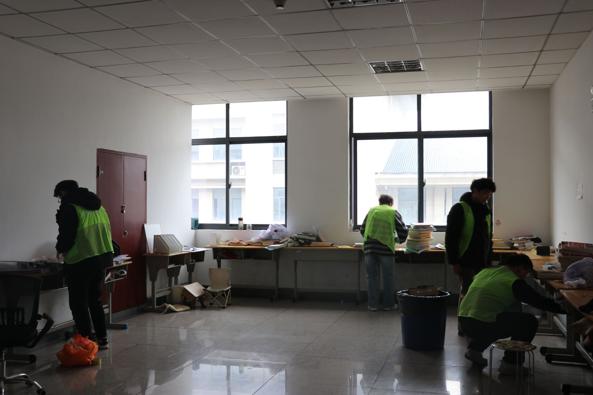 活动现场,志愿者们分工明确、配合默契,重点对实验室和自习室进行全方位卫生整治和安全隐患排查。大家细心整理书籍、实验记录本等,分类收纳、规范存放,细致擦拭桌椅门窗、清扫卫生死角,及时开窗通风改善空气质量;同时排查电路、消防设施等安全隐患,对发现的问题做好登记上报,筑牢安全防线。经过师生共同努力,实验室、自习室和办公室焕然一新,为新学期营造了整洁、安全、舒适的学习、工作环境。