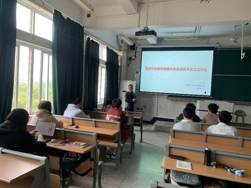 4月13日下午,学院汪竹青教授在教学楼A503教室作了题为“高纯环硅酸锆钠晶体的合成技术及工艺优化”的学术报告,2025级化学专业研究生和部分本科生踊跃参加。