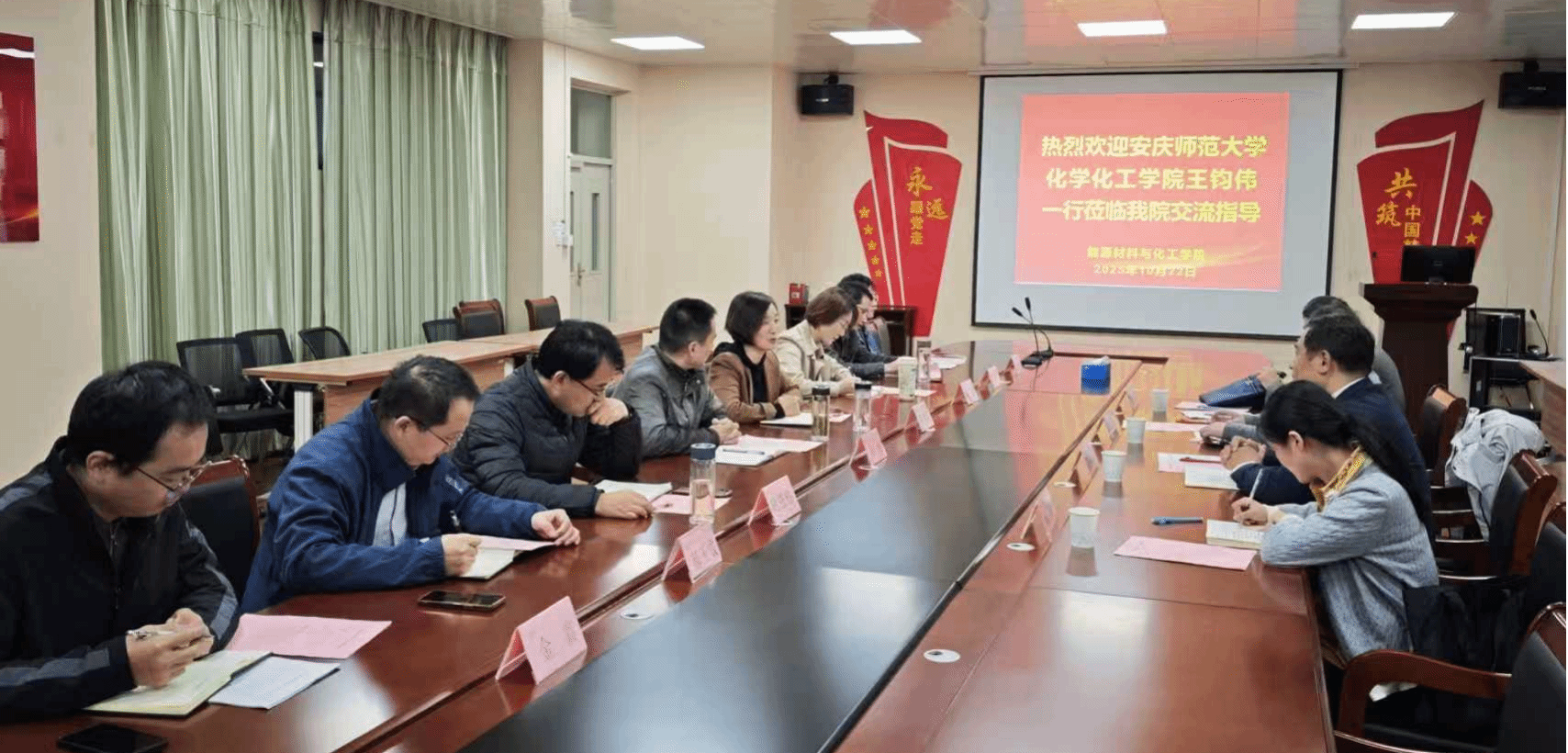 10月22日,tyc41183太阳成集团院长王钧伟带队院长助理汪玲、张传磊与材料化学教研室主任王来国赴合肥大学开展学科专业建设调研。合肥大学能源材料与化工学院党委书记黄雄英,院长杨伟,副院长胡恩柱、朱三娥及相关专业负责人、骨干教师参加交流会。