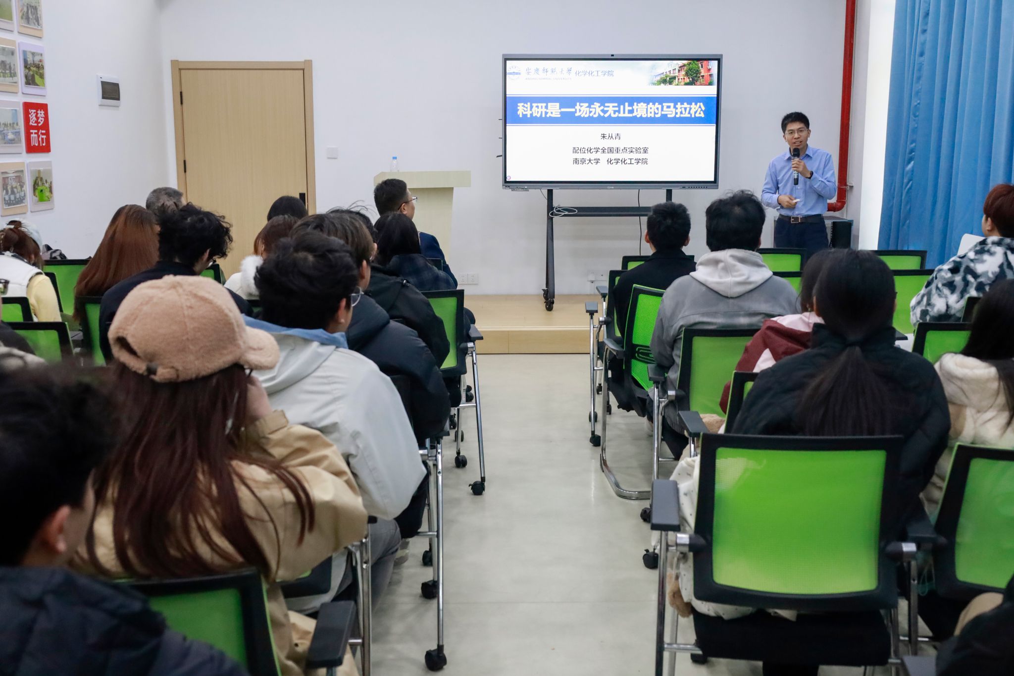 朱从青以“科研是一场永无止境的马拉松”为题,回顾了大学时期受“七朵金花”事迹激励,坚定考研信念并坚持上岸的经历。他表示,本科期间授课老师、辅导员经常鼓励其深耕专业,潜心治学。他特别强调宿舍氛围对学习成长所起的关键作用,鼓励同学们结成科研搭子,尽早投身实验室接触科研,用实践探索筑牢发展根基。